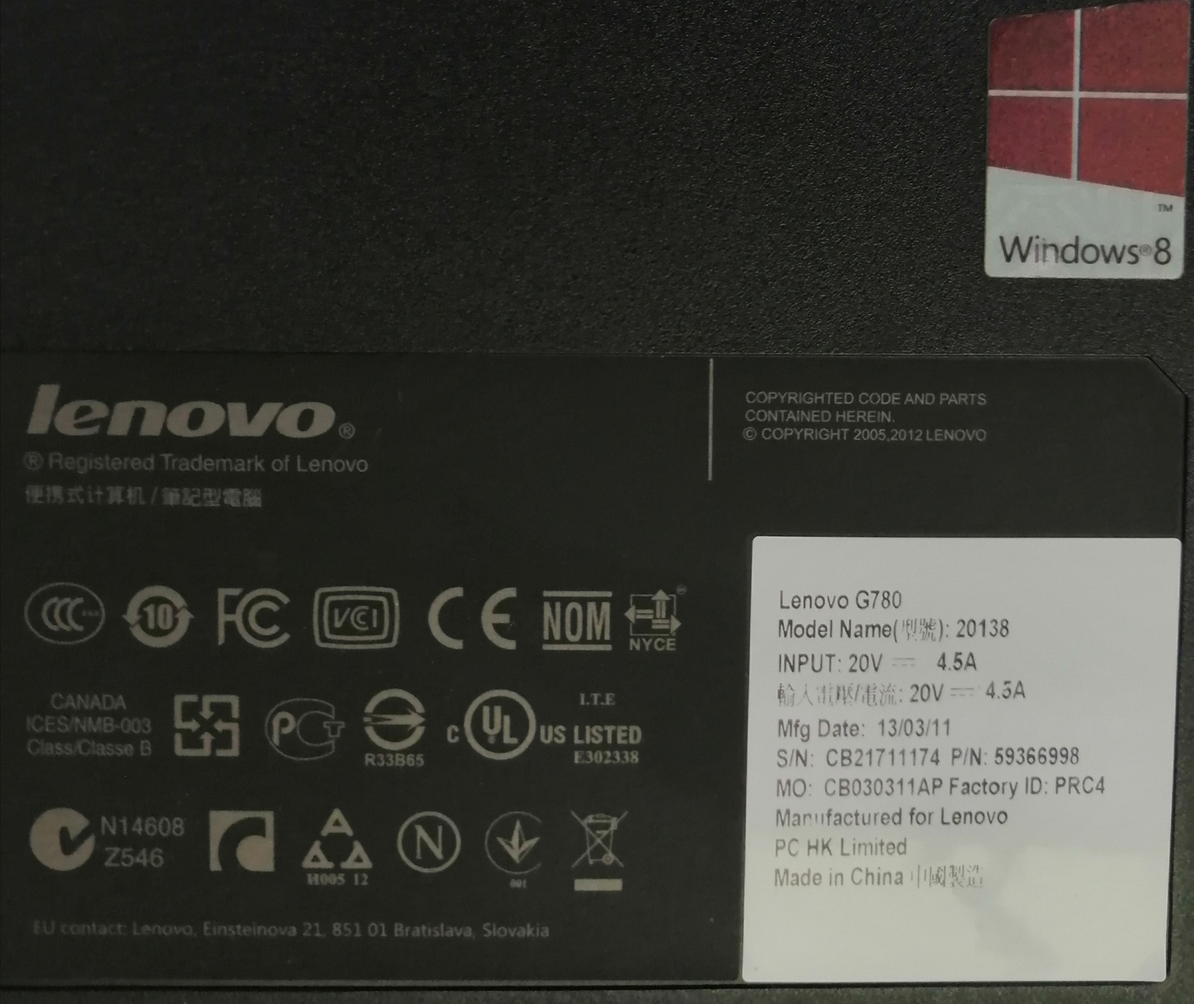 G780 je len modelova rada, mozes tam mat cokolvek, takze sa neda urcit co mas za nb.