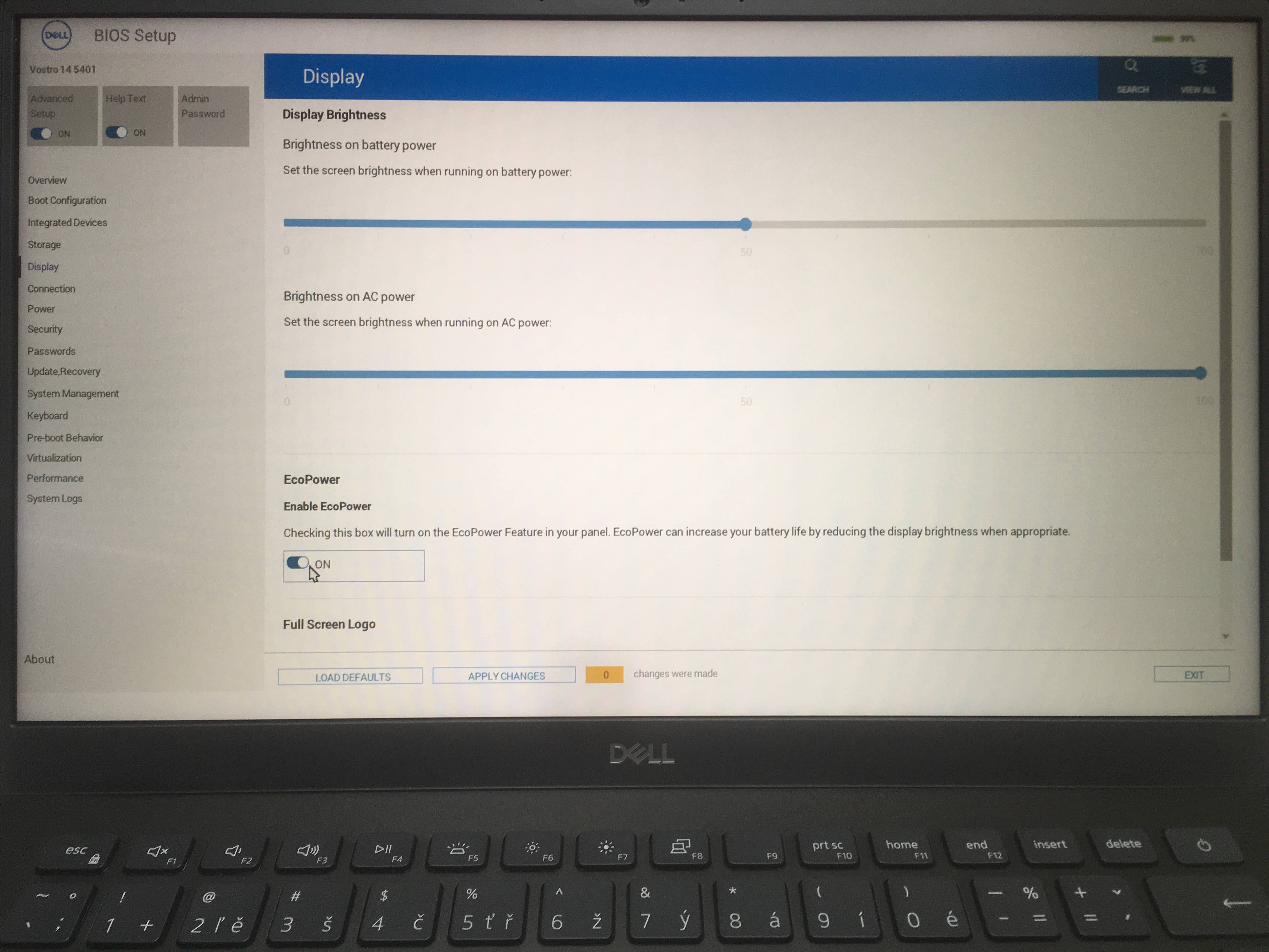 Dell : pri štarte F12 - boot menu - BIOS setup - Display