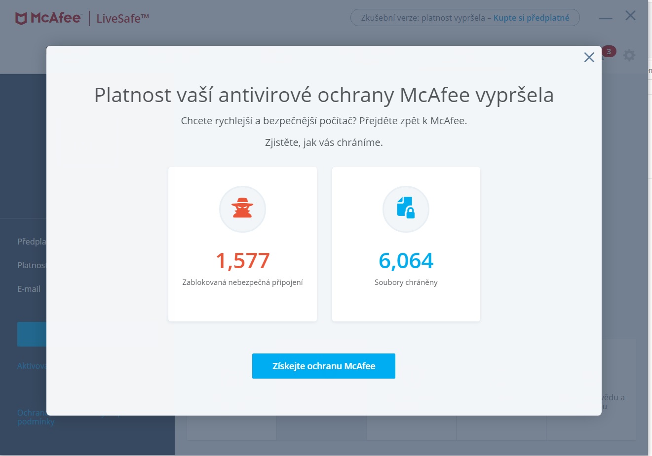 Moje známá která si koupila nový Notebook s nainstalovanou zkušební verzi McAfree antivirus tak ji vypršela platnost mám to odinstalovat nebo ne? otravuje ji tento dialog vis příloha díky
