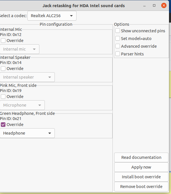 Mám zaškrnuto Overide. A mám to tedy nechat na tom HeadPhone?