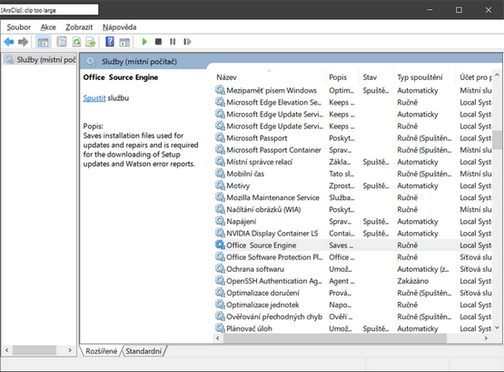 Viz ten obrázek? Na tom obrázku ale žádné potvrzení není, ta služba se česky jmenuje "Služba Microsoft Office Klikni a spusť" (ClickToRunSvc) a jestli mezi službama je nebo není by šlo vidět pokud bys byl u písmena S, ne M - P. Já ti uváděl český název procesu a ten je jiný než český název služby. Stejně tak je jiný anglický a český název služby.