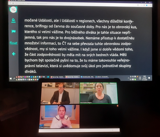 Jenže na tabletu mám jen 4 lidi, ačkoli jich je přítomných třeba 12 a nevidím ty "zelené rámečky", kdo právě mluví. On to někdy přepisovatel/ka napíše, když ty lidi zná. Ale když je nezná, jsem v háji a jako kdyby mluvil nějaký jeden schizofrenik, jelikož nepoznám, že se změnil hlas.