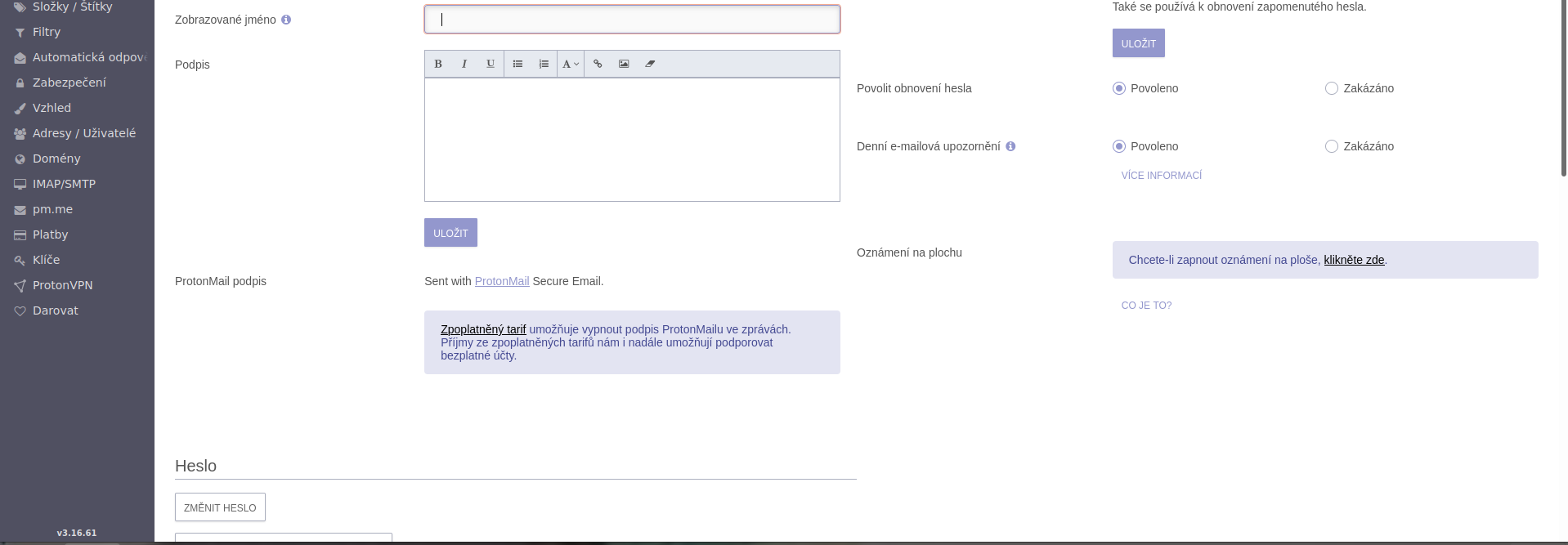 Navíc já si třeba v protonmailu můžu navolit název, který se lidem zobrazuje. Takže můžu mít třeba kopretina@protonmail.com, ale v nastavení si dám ,,Juraj Jánošík". A když ta baba koukne na email, uvidí email od Juraj Jánošík, i když skutečný název je kopretina@protonmail.com.