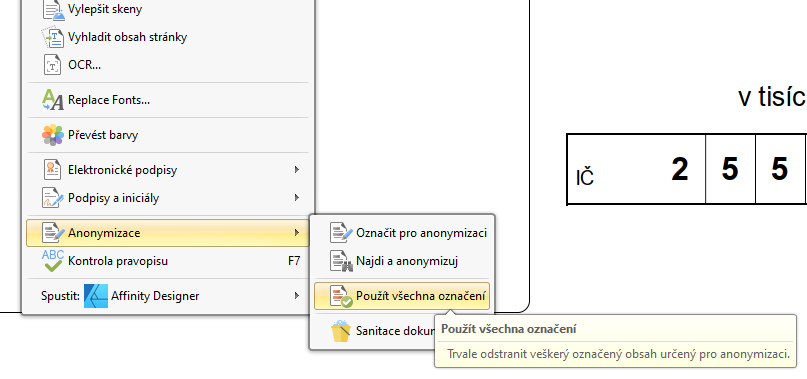 Mám PDF-XChange Editor Plus a pokud v dokumentu označím obsah pro anonymizaci a tu v dalším kroku potvrdím, daný obsah se začerní a to co je pod tím definitivně a nenávratně zmizí. Vrátit se to nedá a není to tam, ověřoval jsem to třeba ve vektorovém editoru Affinity Designer (a jde to také ověřit třeba v adobě Illustrator).