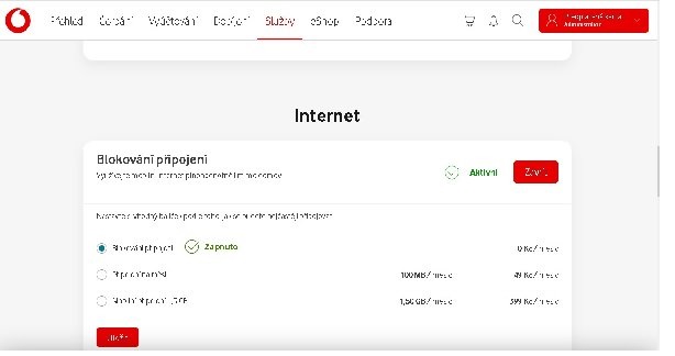 Internet jsem si povolil v samoobsluze vodafone 100 MB za 49 Kč