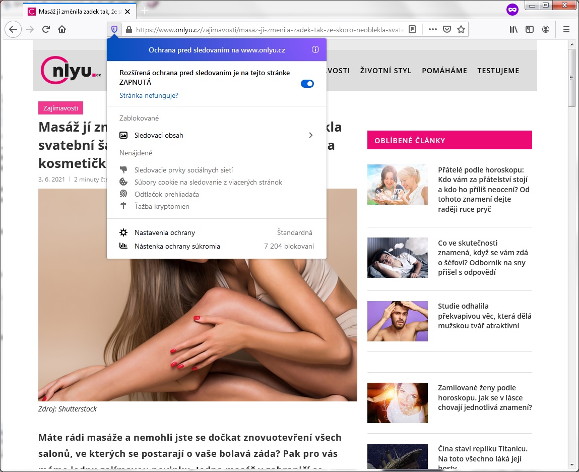 V mojom Firefoxe je to úplne bez reklám, netreba ani žiadne doplnky, stačí nechať zapnutú ochranu pred sledovaním.