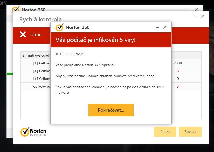 To prve je klasicky adaware a to druhe vyzeraq uz nenapadnajsi, ale je to tiez, pretoze Norton nikdy takto agresivne nekomunikoval.
