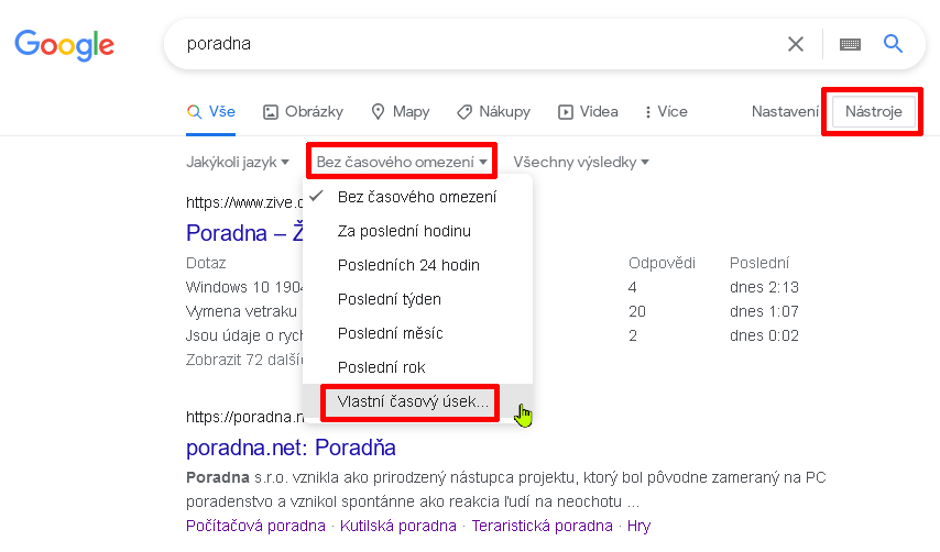 Google: hledat - nastroje - bez casoveho omezeni - vybrat vlastni casovy usek. Napis pak, nakolik to bylo uspesne, ja to nikdy nezkousel.
