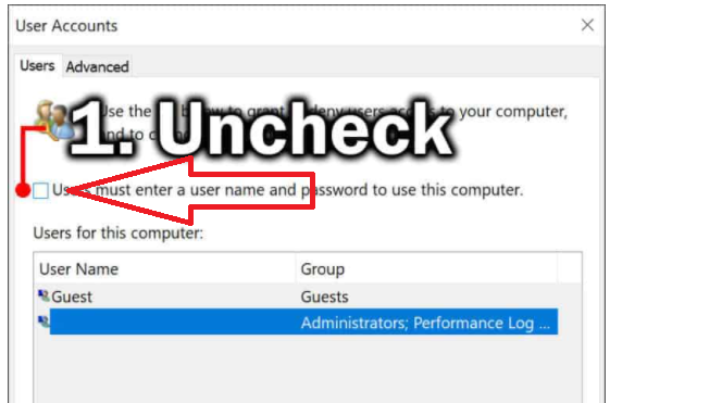 Než otevřeš control userpasswords2, tak v Nastavení/Účty/Možnosti přihlášení vypni Windows Hello ( zapnuté Hello - zaškrtávátko není, zakázané Hello - je).