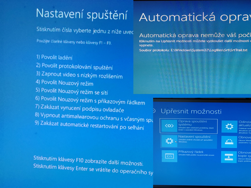 Zdravím, po několika neúspěšných pokusech o aktualizaci Win10, už PC nenastartuje. Několikrát v posledních týdnech proběhla automatická oprava a Windows znovu naběhli. Přestože jsem vypínal bez aktualizace, tak se systém sám občas aktualizoval, a po automatické opravě i znovu nastartoval. Teď už ne. Vyzkoušel jsem všechny možnosti "Nastavení spuštění" bez úspěchu, a k odinstalaci aktualizací, nebo jiných možností (obnovení systému apod.) nemám heslo do účtu. Poradí prosím, někdo jak postupovat dál? Předem děkuji, za jakýkoli tip. :beer:
