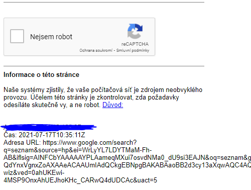 Tu hlášku Gouglí dává (alespoň u mě) při změnách IP adresy a následném vyhledávání. Není to žádná šk…
