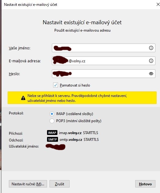 Tak si to nastavil Thunderbird sám,nedělám to poprvé a nikdy nebyl problém.Zkusil jsem všechny možnosti,POP3 beze změny.Ve Firefoxu uložené heslo není v Thunerbirdu také ne,jedná se o novou instalaci.