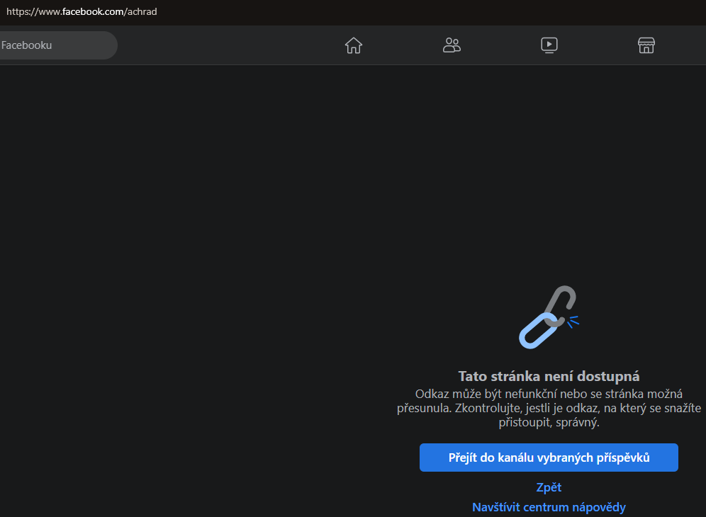 Z Google historie nelze smazat fb stránku, protože existuje, ačkoliv je nedostupná.