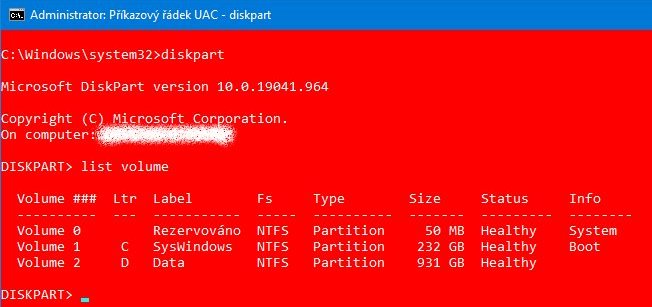 Můžeš dát výpis oddílů (správa disků nebo diskpart) ???
