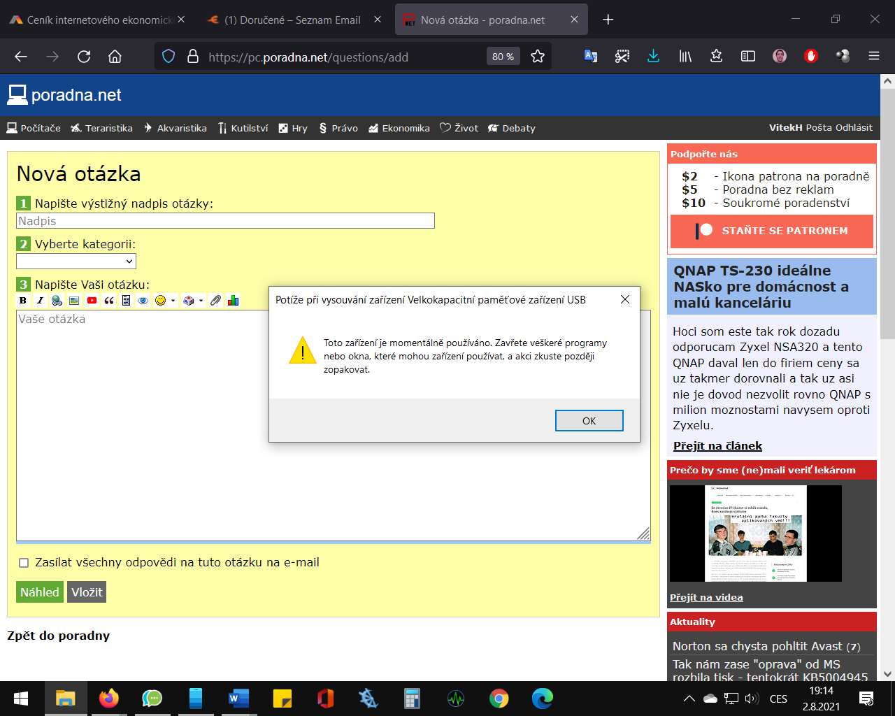 Problém s nemožností odpojit harddisk