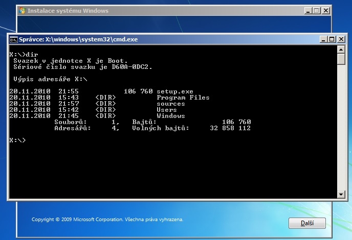 Instalačku tak nevidíš, ale když z ní nabootuješ a dáš si Shift+F10 a v tom Command okně se přepneš…
