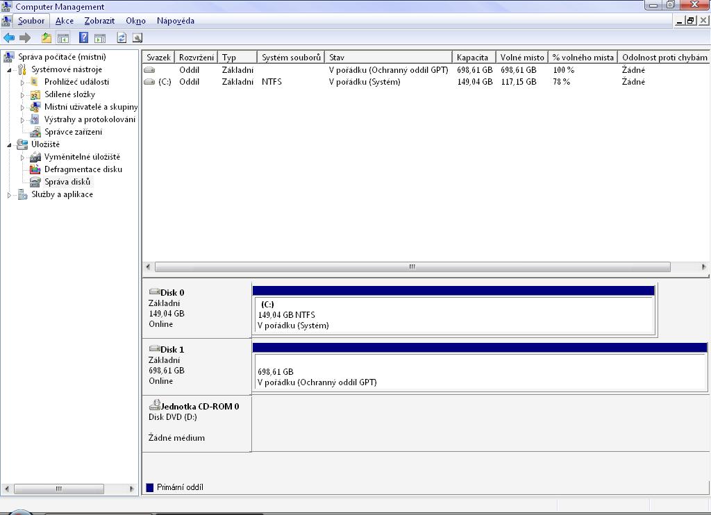 Ve Správě disků ho vidíš?