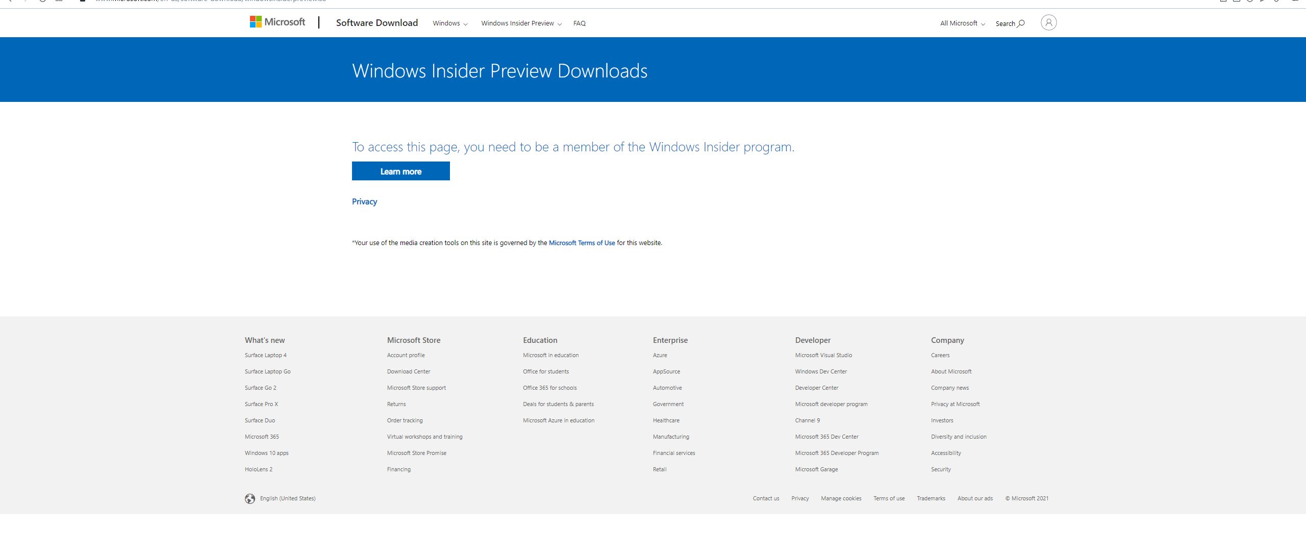 Říkají, že musím být přihlášenej do Windows Insider, to jsem ale stejně to ISO stáhnout nemůžu.