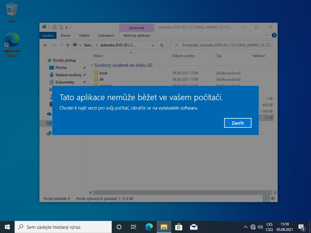 Chce nainstalovat 64bit na 32bit.
