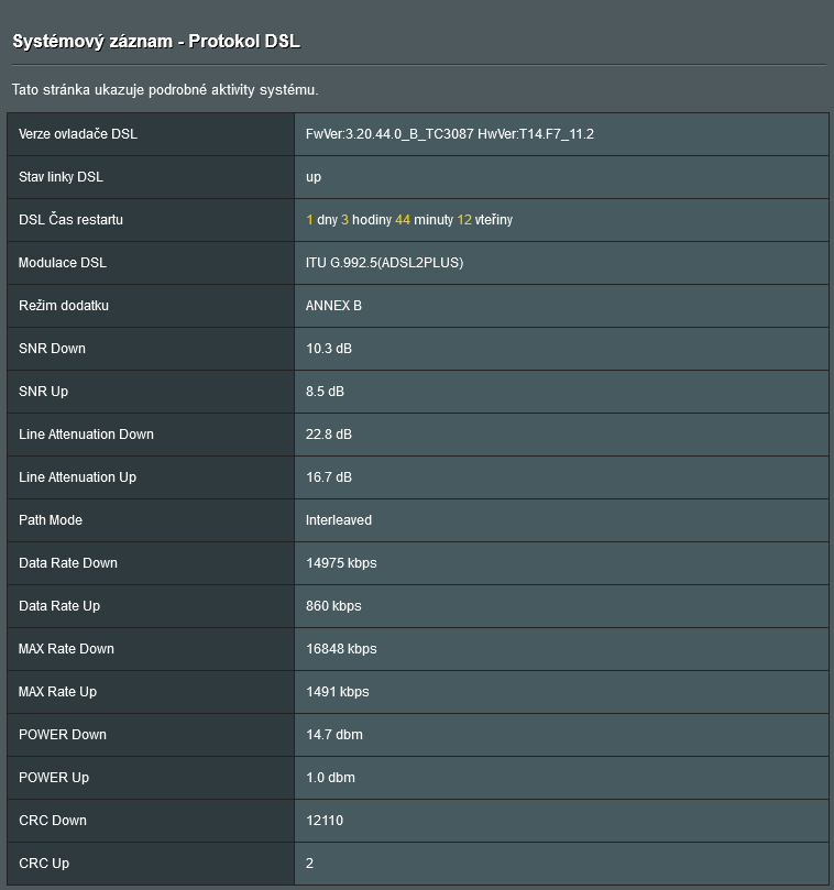 v poslednom čase (2 - 3 dni) mi vypadáva (A)DSL internet. Výpadky trvajú pomerne krátko (obvykle niekoľko sekúnd, výnimočne zopár minút), sú však pomerne časté (3 - 4-krát denne) a prestanú samy, prípadne po reštarte routra. Provider tvrdí, že u nich chyba nie je, a zároveň potvrdil, že v daných časoch došlo k rozpadu spojenia.