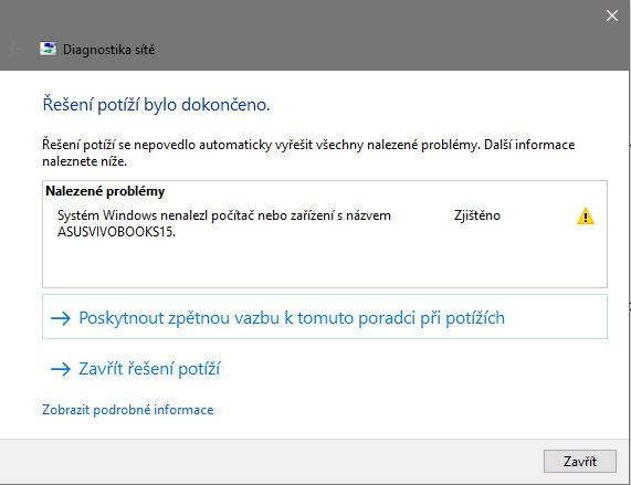 Donedávna fungující připojení nb Asus je nyní nefunkční. Na jiném pc vyskočí tato hláška, viz screen.