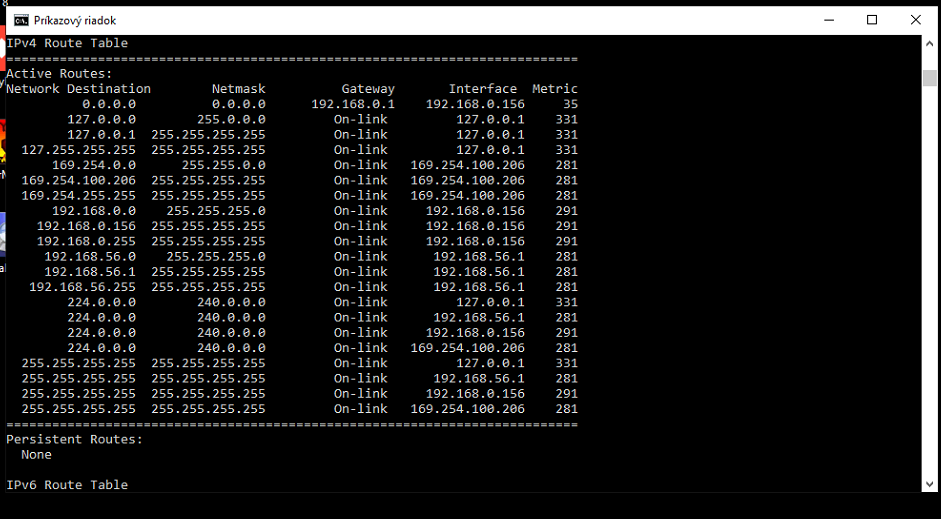 Do cmd napíš route print, zobrazí ti výpis rútovacej tabuľky. Potom aktivuj tú svoju vpn linku a zno…