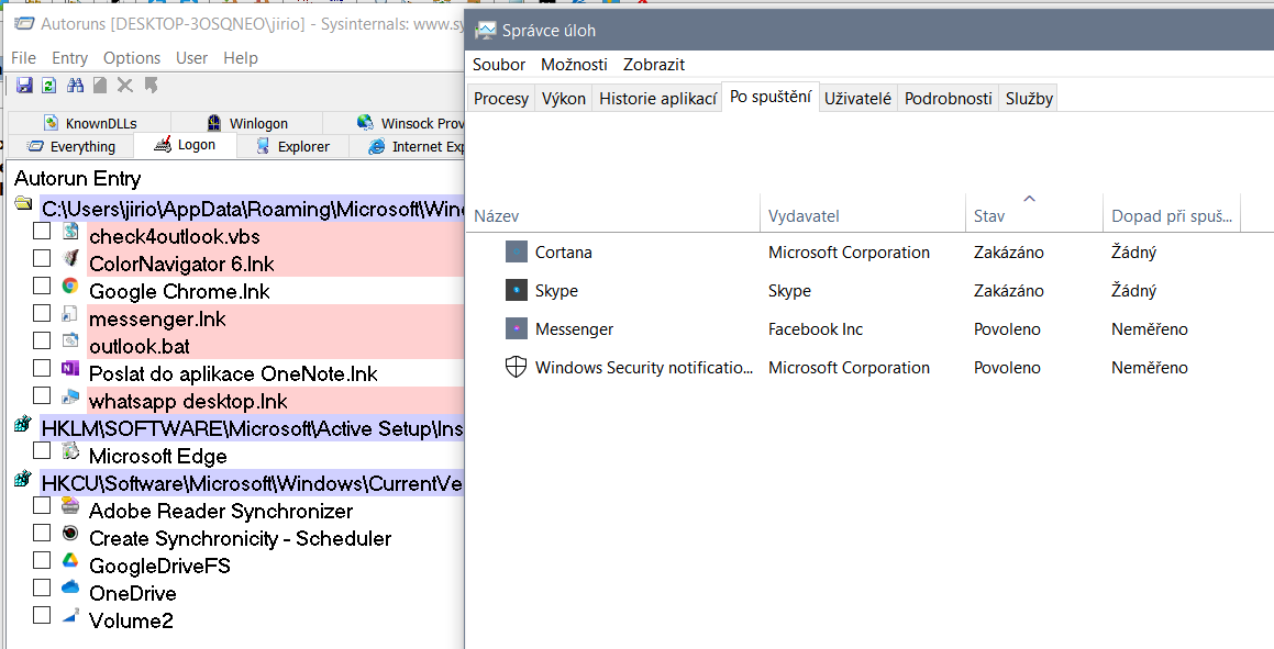 Nevím, co tím myslíš. Pokud myslíš v Autoruns a následně přes Jump to entry v regedit HKCU\Software\Microsoft\Windows\CurrentVersion\Run, tak tam jsem nic závadného neviděl. Je a bylo tam jen to, co tam má být.