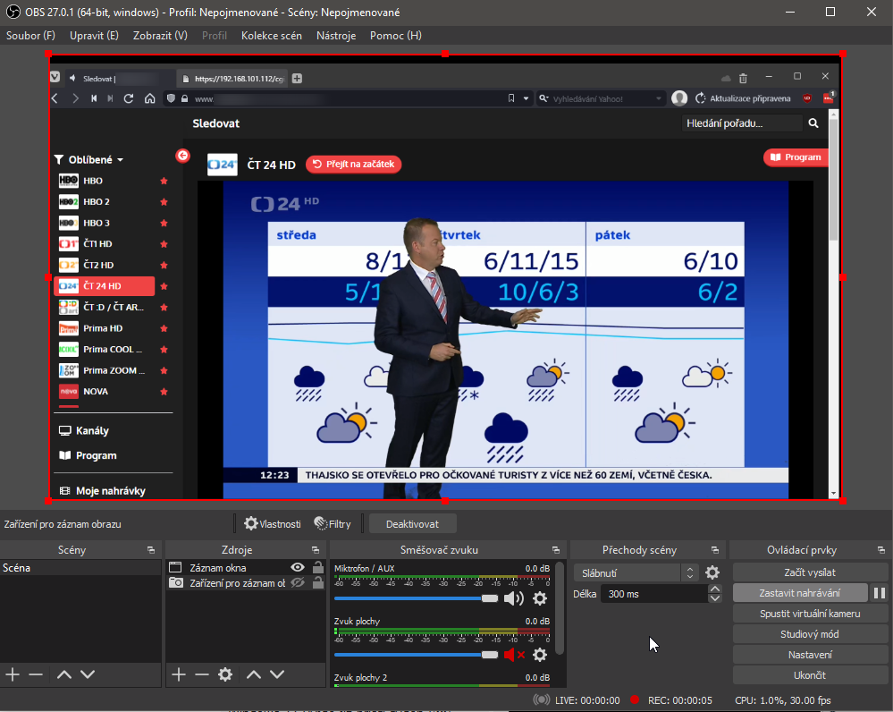 Toto video som nahraval pred 2 dnami cez OBS.
