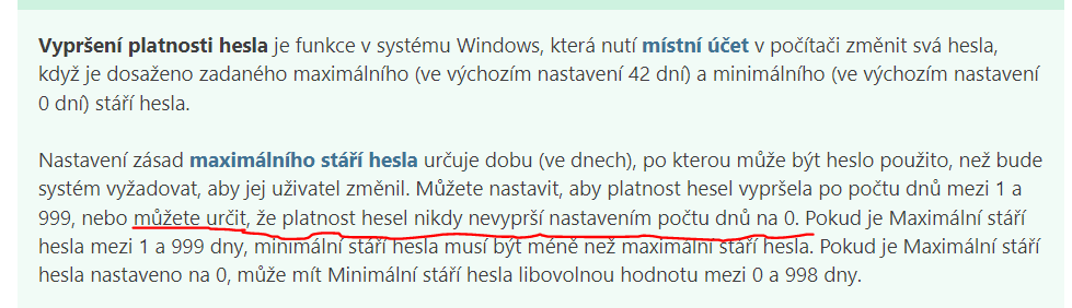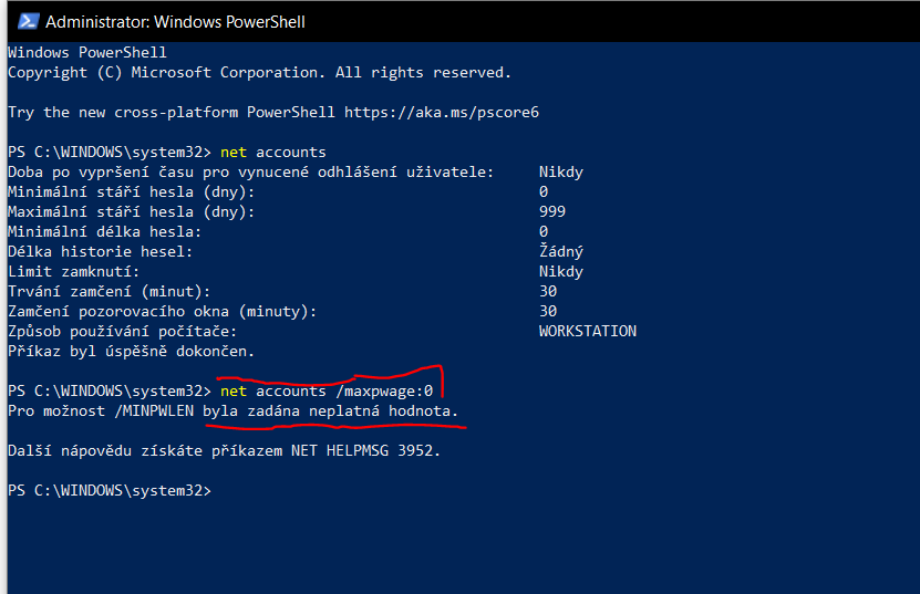 A nejde mi ani vypnout přes příkazový řádek změnu hesla, šlo to nastavit na 999dní místo původních 42, ale nejde tam nastavit hodnota 0 jak píšou pro vypnutí.