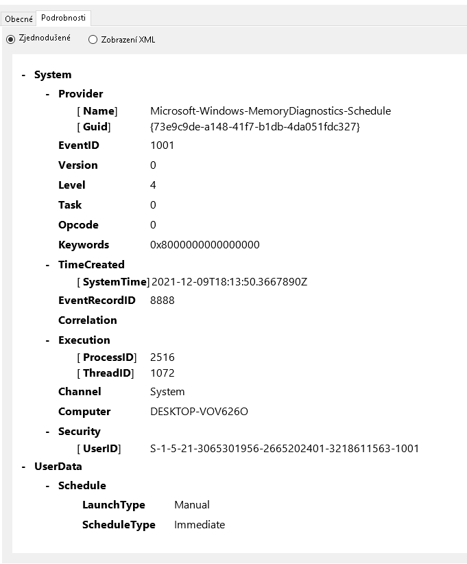 test proběhl až do konce a žádné hláška o výsledku po restartu pc nebyla. výpis testu jsem si musel vyhledat ručně.