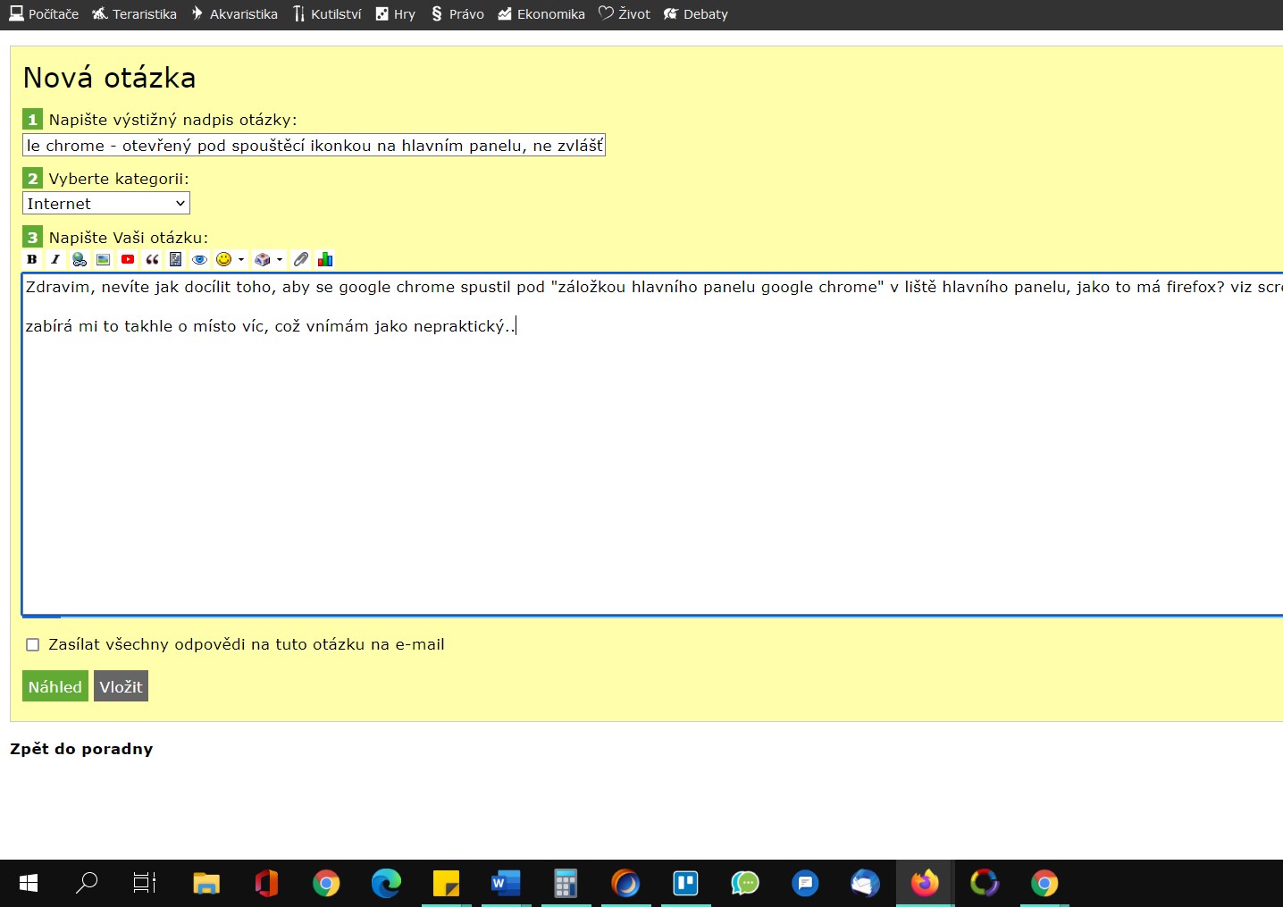 Google chrome - otevřený pod spouštěcí ikonkou na hlavním panelu, ne zvlášť