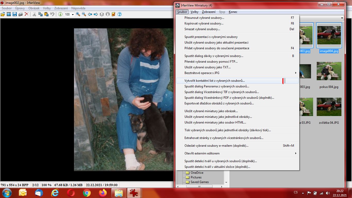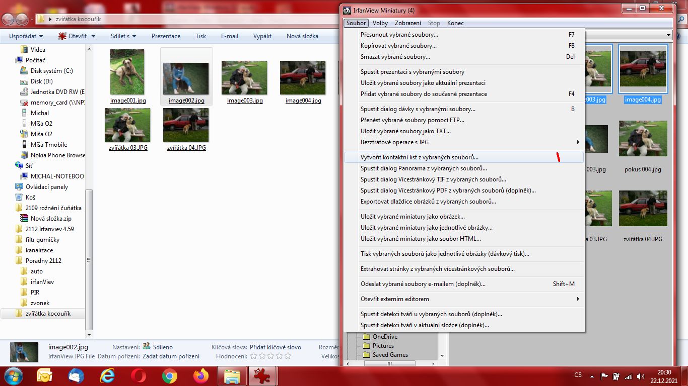 Ale pro jistotu|: V tom adresáři najdeš fotky, označíš je myší (při podrženém Ctrl) a pak v tom okně (taky v menu Soubor) najdeš tu odpovídající volbu Vytvořit kontaktní list z vybraných souborů (nebo adekvátní, podle použité češtiny Irfanu).