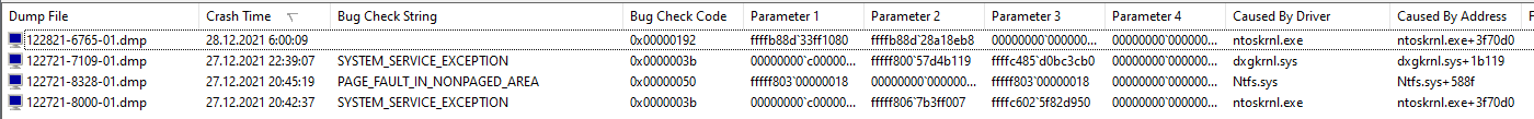 2. Pro analýzu příčin pádů použij BlueScreenView od Nirsoftu - zajímá tě sloupec s kódem chyby (jestli je pořád stejná či pokaždé jiná) a dále sloupec "Caused by driver", což je možný pachatel. Pokud v tomto sloupci najdeš něco z jádra Windows (např. ntoskrnl), jde většinou o HW problém.