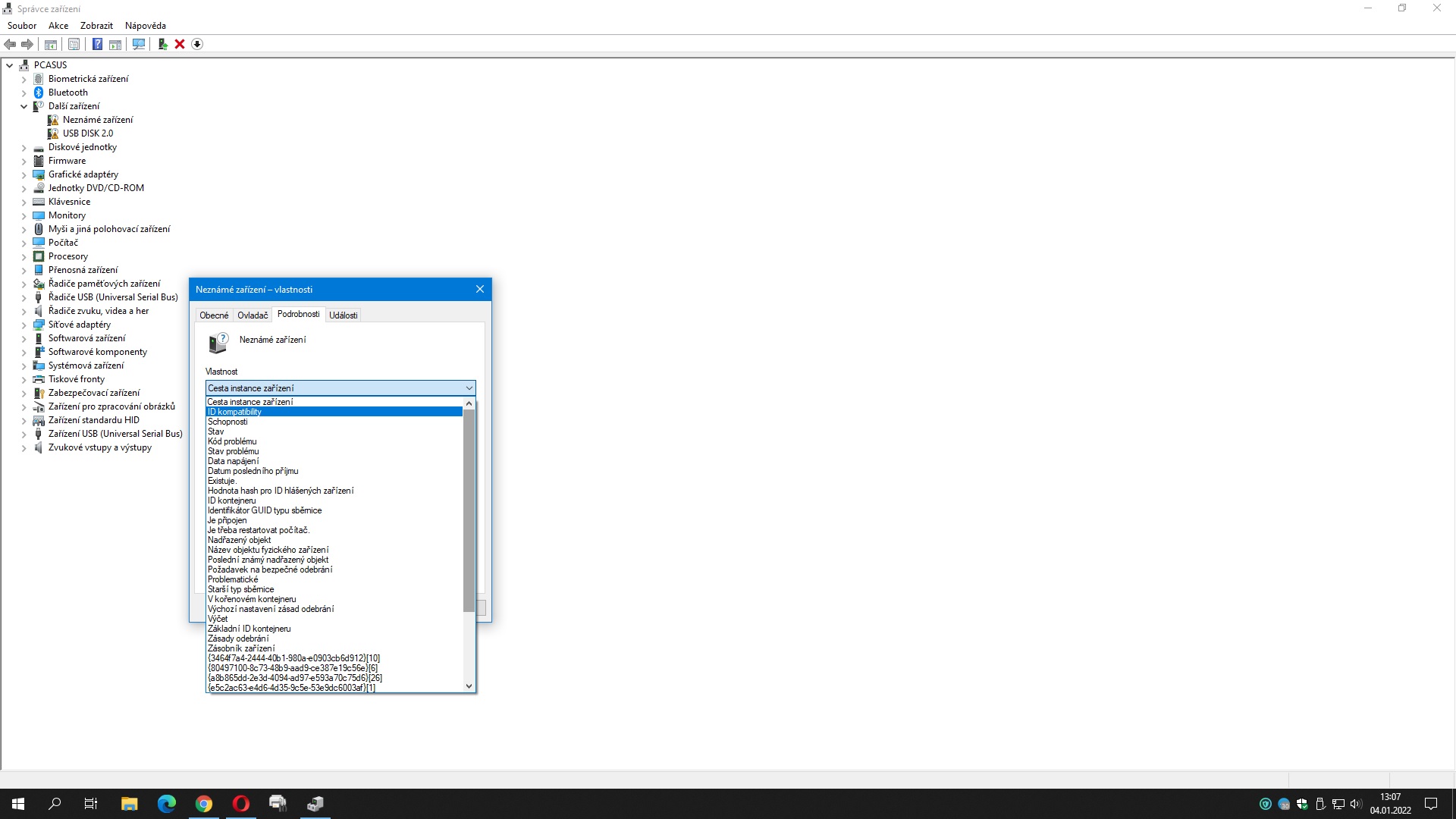 Když dám další flesh do usb ,přibyde další neznámé zařízení s trojuhelnikem ale neotevře se.