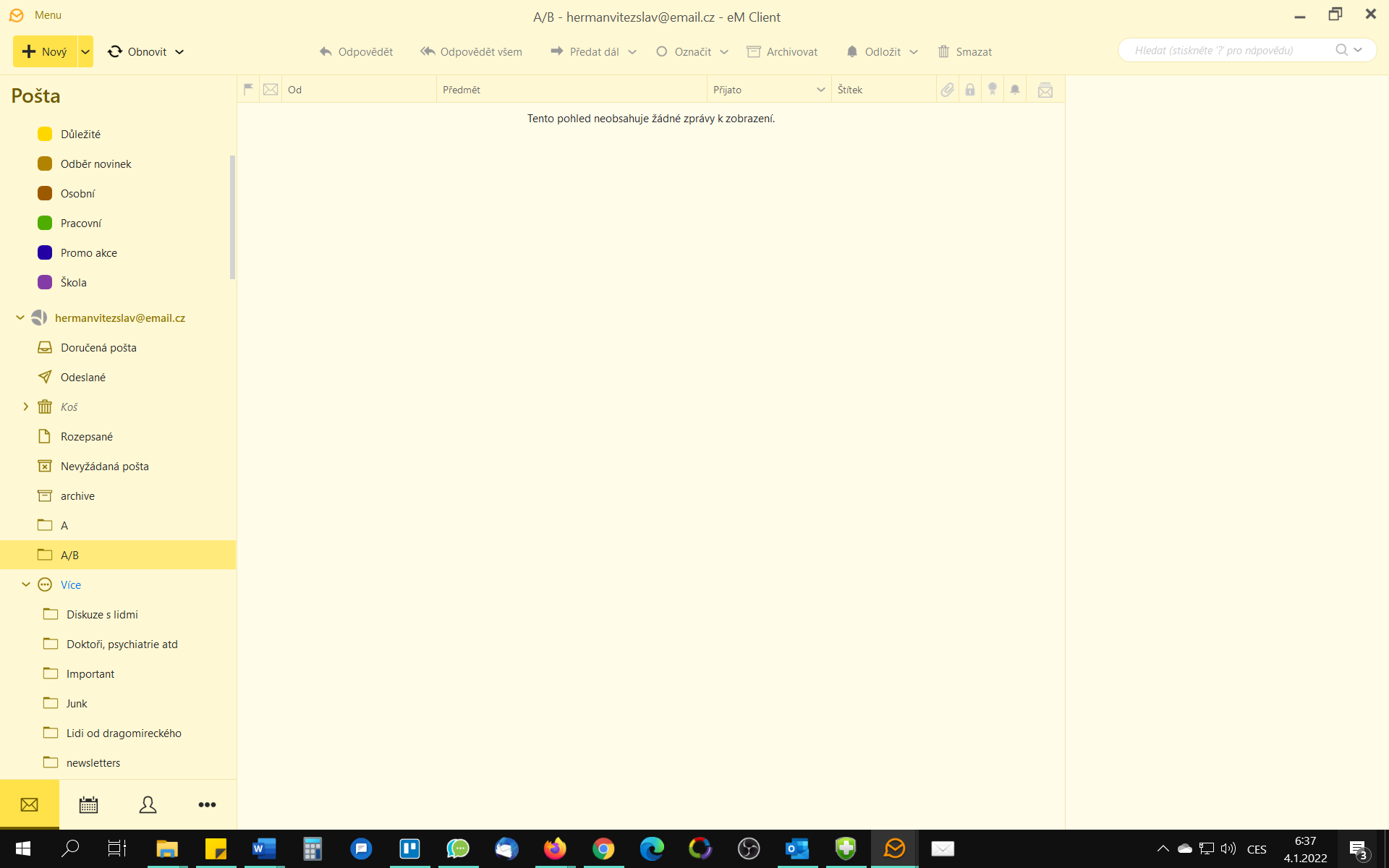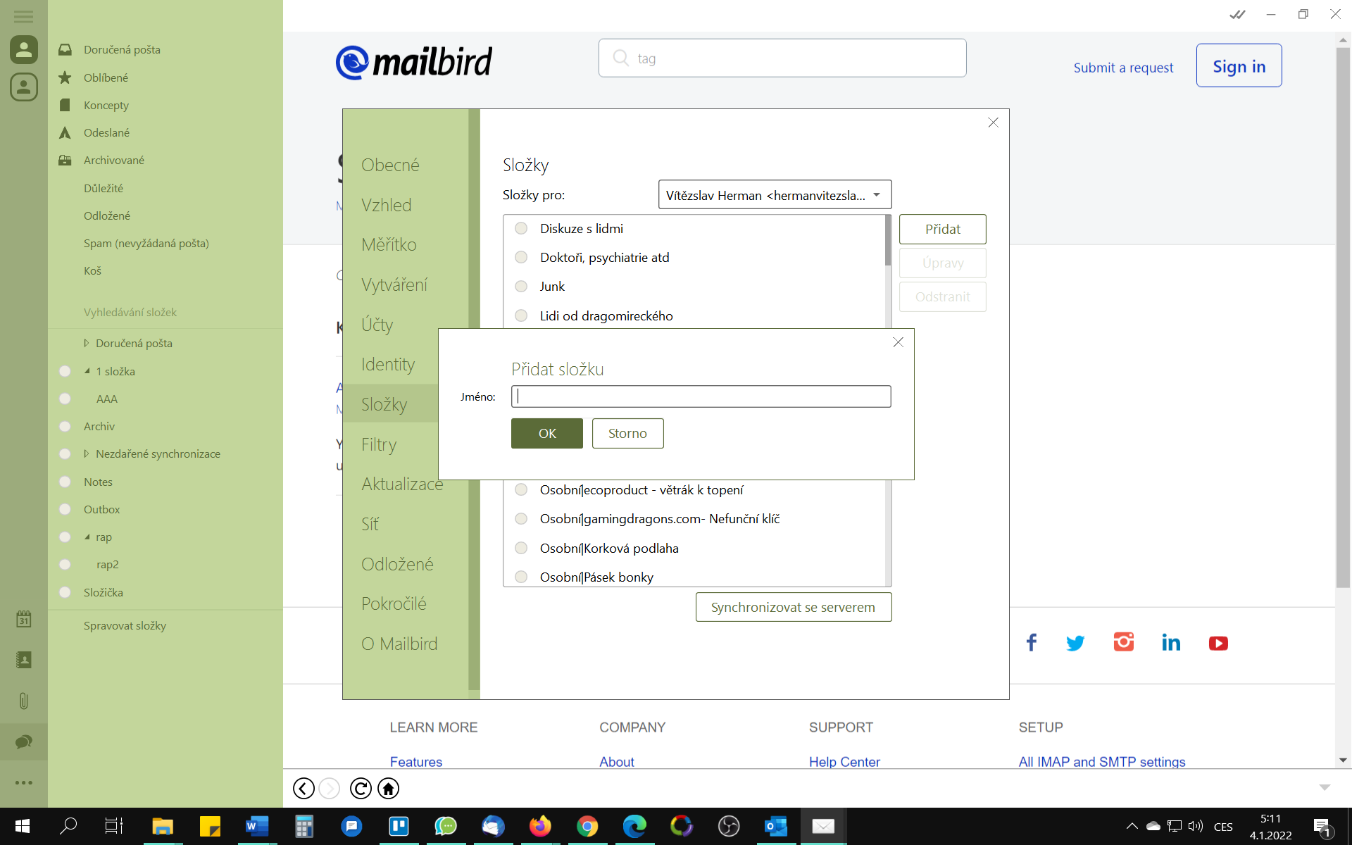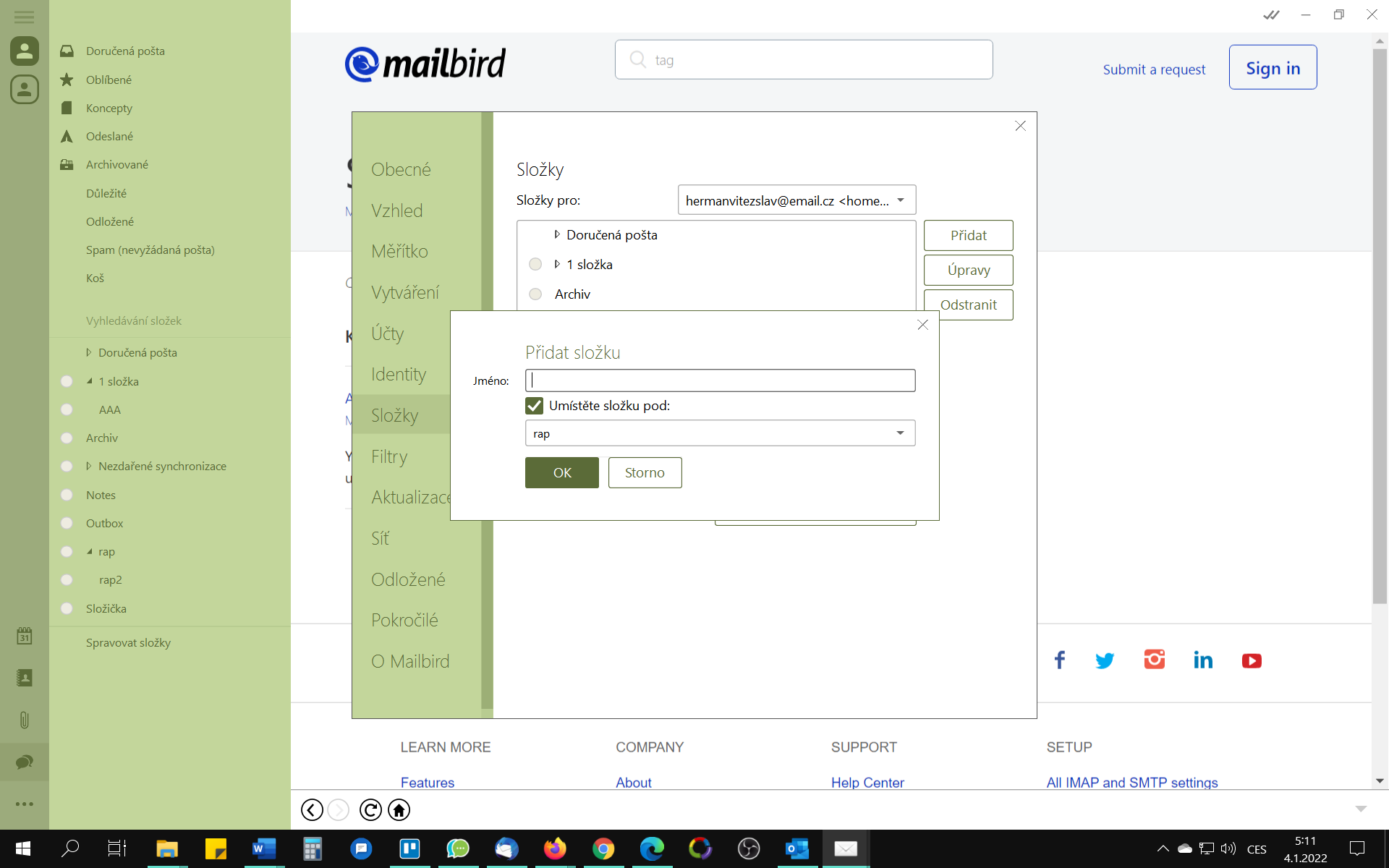 Mám mail od seznam.cz a zjistil jsem při napojení na eM client/BirdMail/Outlook, že ten email server zřejmě neumí podsložky.