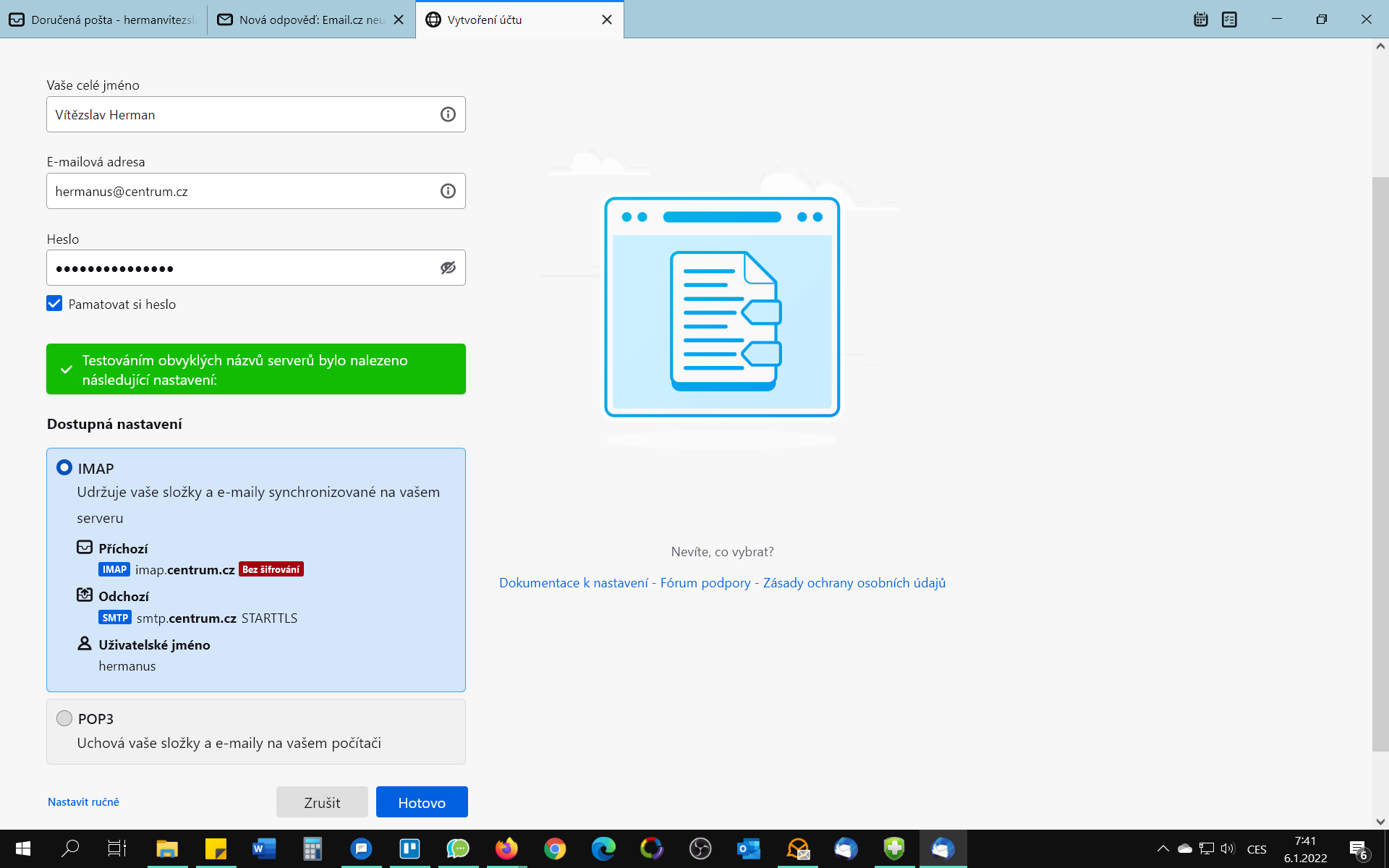 IMAP imap.centrum.cz Bez šifrování