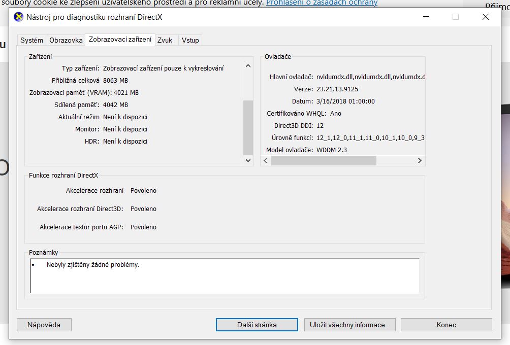 To jsem udelal. V dxdiag, není vidět , že grafika je k dispozici. I když to přepnu na Nvidia. directx.jpg 92.21 KiB