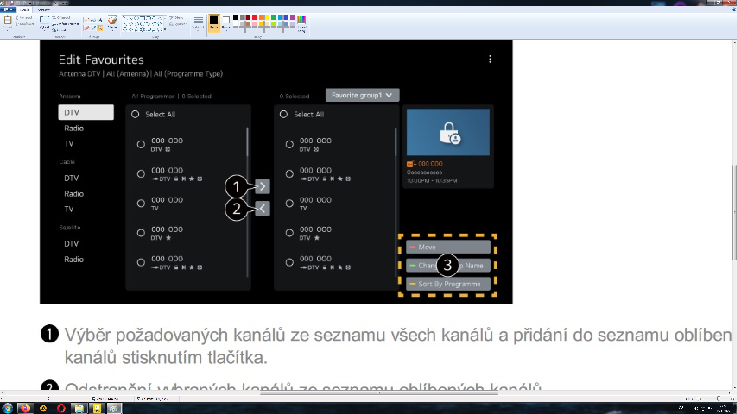 No jestli si to dobře pamatuju tak tam žádná volba Edit programů nikde nebyla abych cokoliv zkoušel,to co je dole úprava oblíbených to tam šlo.No ale nevím jakým tlačítkem se ty oblíbený nastavili aby se vybíralo z nich jenom,respektivě sem se tam nedostal pak.U Philipsu mám třeba skupiny programů a zvolíš třeba A a pak už lítáš jenom v tom A a nikde jinde,mačáš to jedním tlačítkem na ovladači u LG nic takového nevidím a ten návod stojí taky za vě věci..No zejtra dám vědět jak to dopadlo.