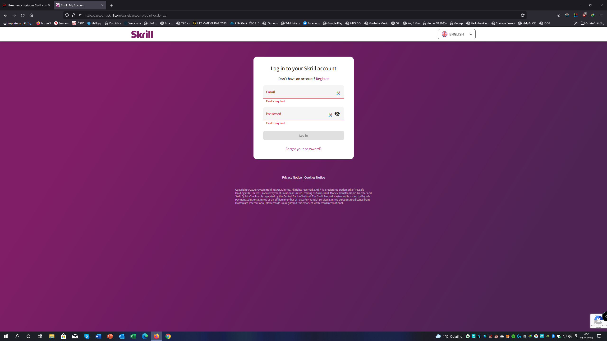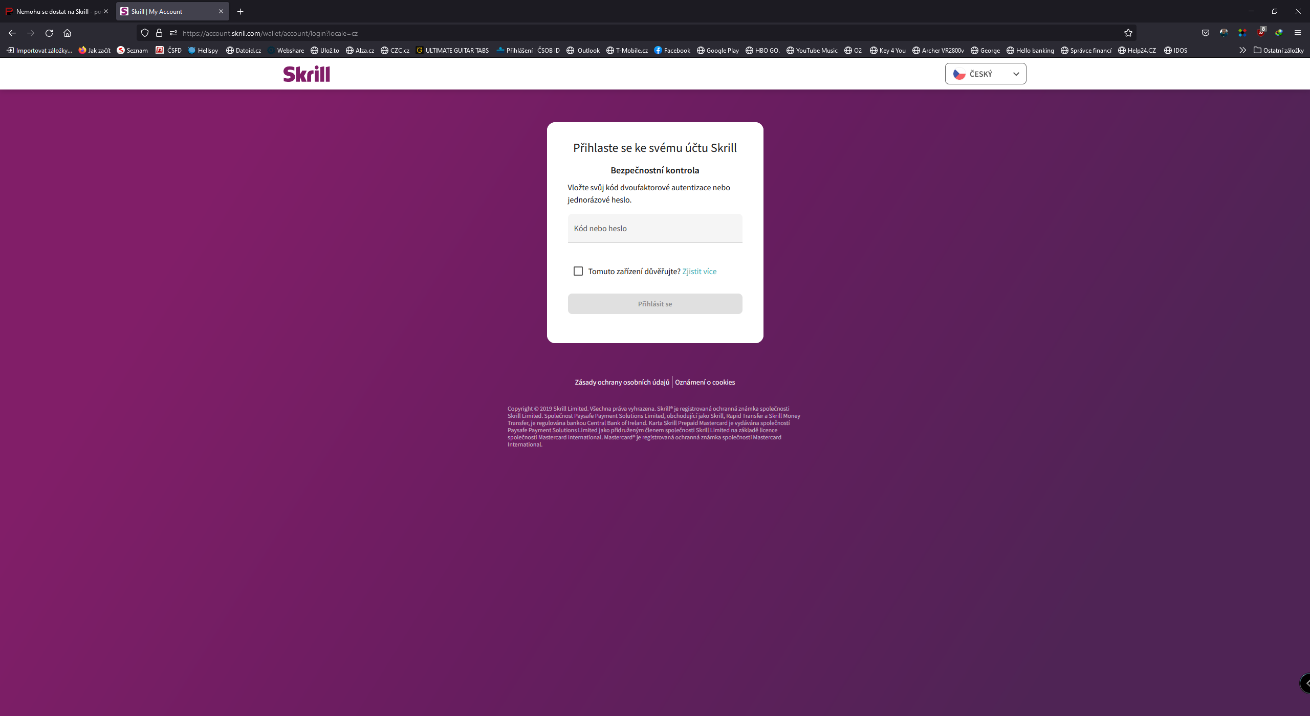 Nemohu se dostat na Skrill