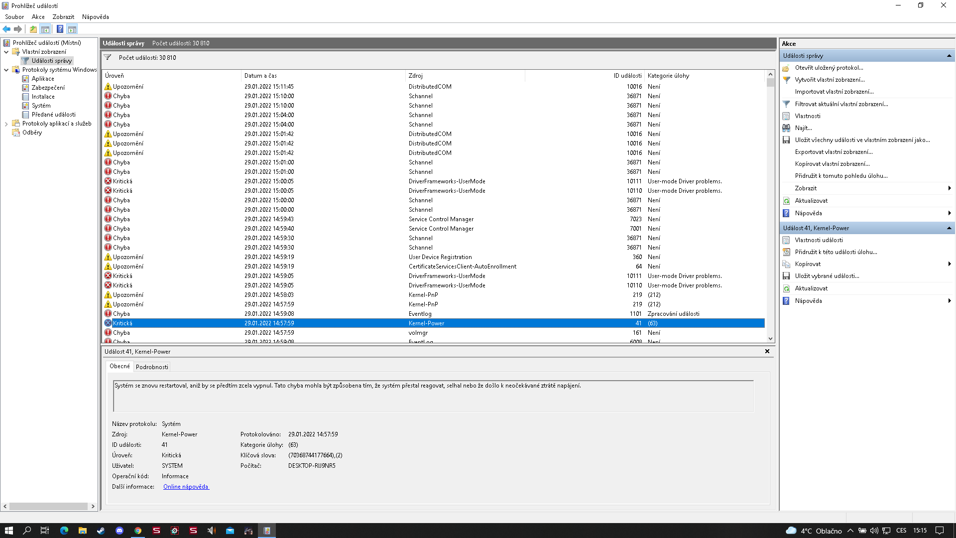 Jak zjistím přesnou příčinu ? V případě teploty by to mělo někde vyhodit zprávu ne ? Ztráta napájení by musel být zkrat uvnitř pc ne ? Proč funguje někdy v pohodě týden a potom se vypne. Začalo to dělat až teď v lednu.