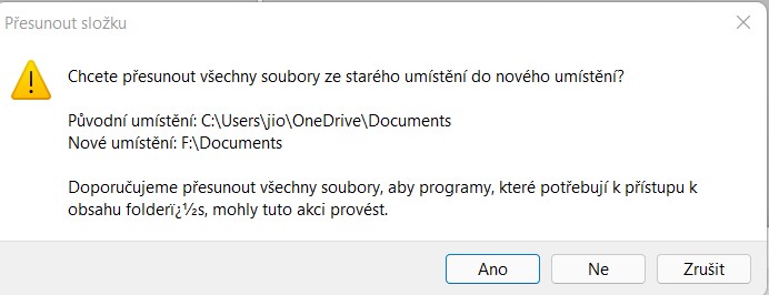 Záložka umístění. To, když změníš, tak se tě zeptá, zda chceš přesunout i obsah. Přesuň si to, kam potřebuješ