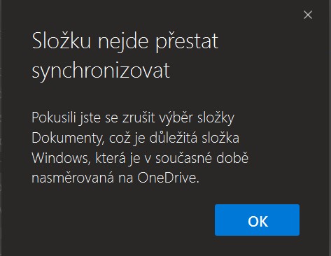 Jak jsem psal, možná není nutné Onedrive odinstalovávat, stačí jen zrušit synchronizaci Dokumentů...…