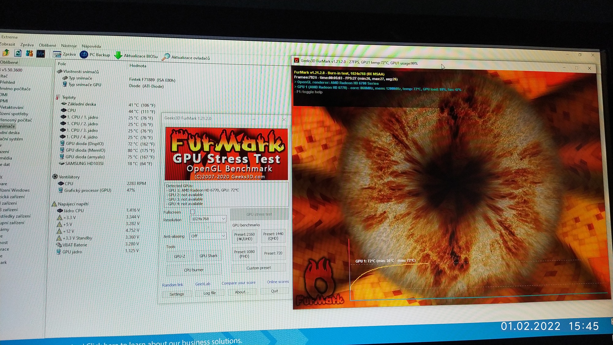 Že grafika má v zátěži teploty normální. Kdybys měl k dispozici jiný zdroj, napoví to víc. Chce to z… poslední