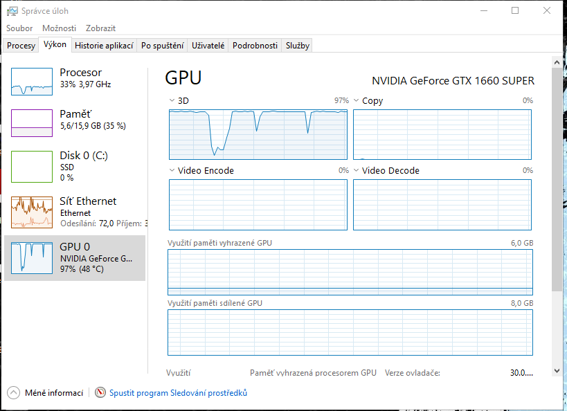 Jak je CPU a GPU vytížený jaké mají teploty? Co všechno jede v pozadí nezpomaluje ti to tam něco?