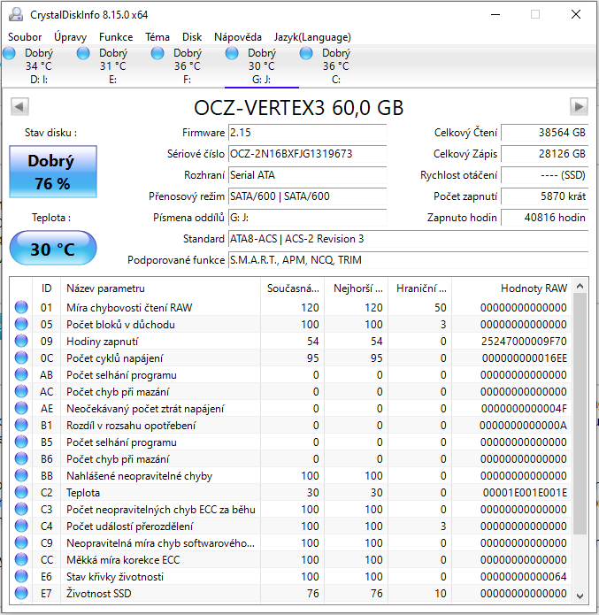 Tohle je SSD po cca 8mi letech s win7. Mel jsem vypnuty jen indexovani a defrag jsem nikdy nedelal.…