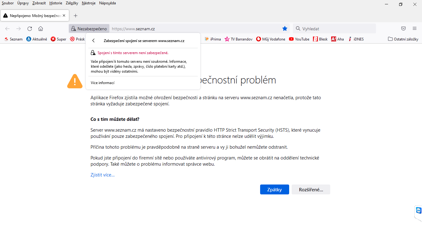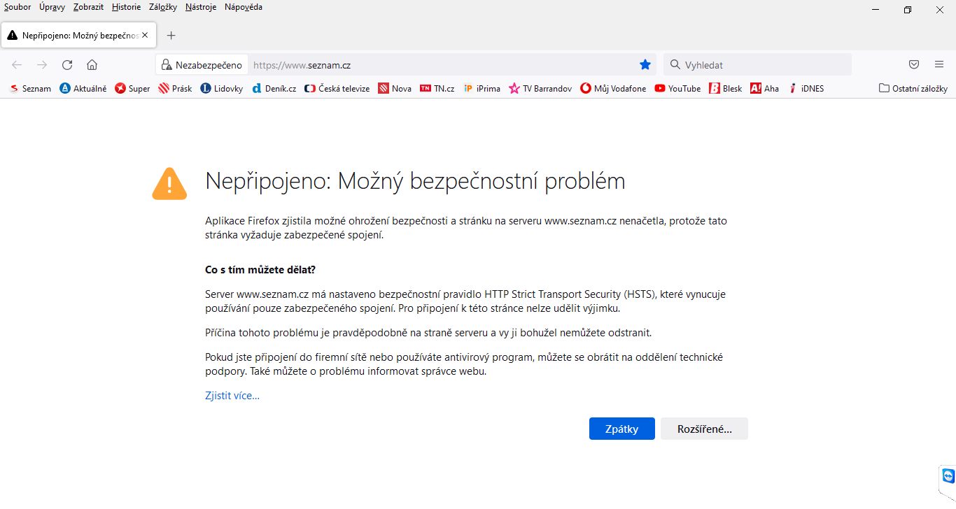 obrázek a info: https://support.mozilla.org/cs/kb/reseni-chybovych-hlaseni-chyba-zabezpeceneho-spoje#w_nepripojeno-mozny-bezpecnostni-problem
