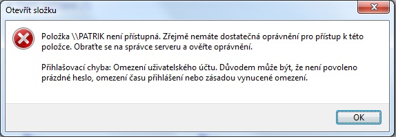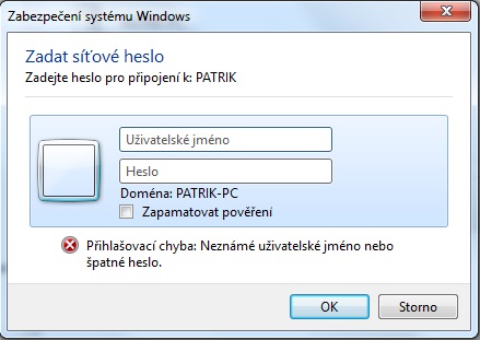 Když však kliknu na ten druhý počítač, který si chci jakože otevřít a přes síť přesounout data, chce to po mě: ZADAT SÍŤOVÉ HESLO (Zadejte síťové heslo pro připojení k JMÉNO), tam to chce uživatelské jméno a heslo.