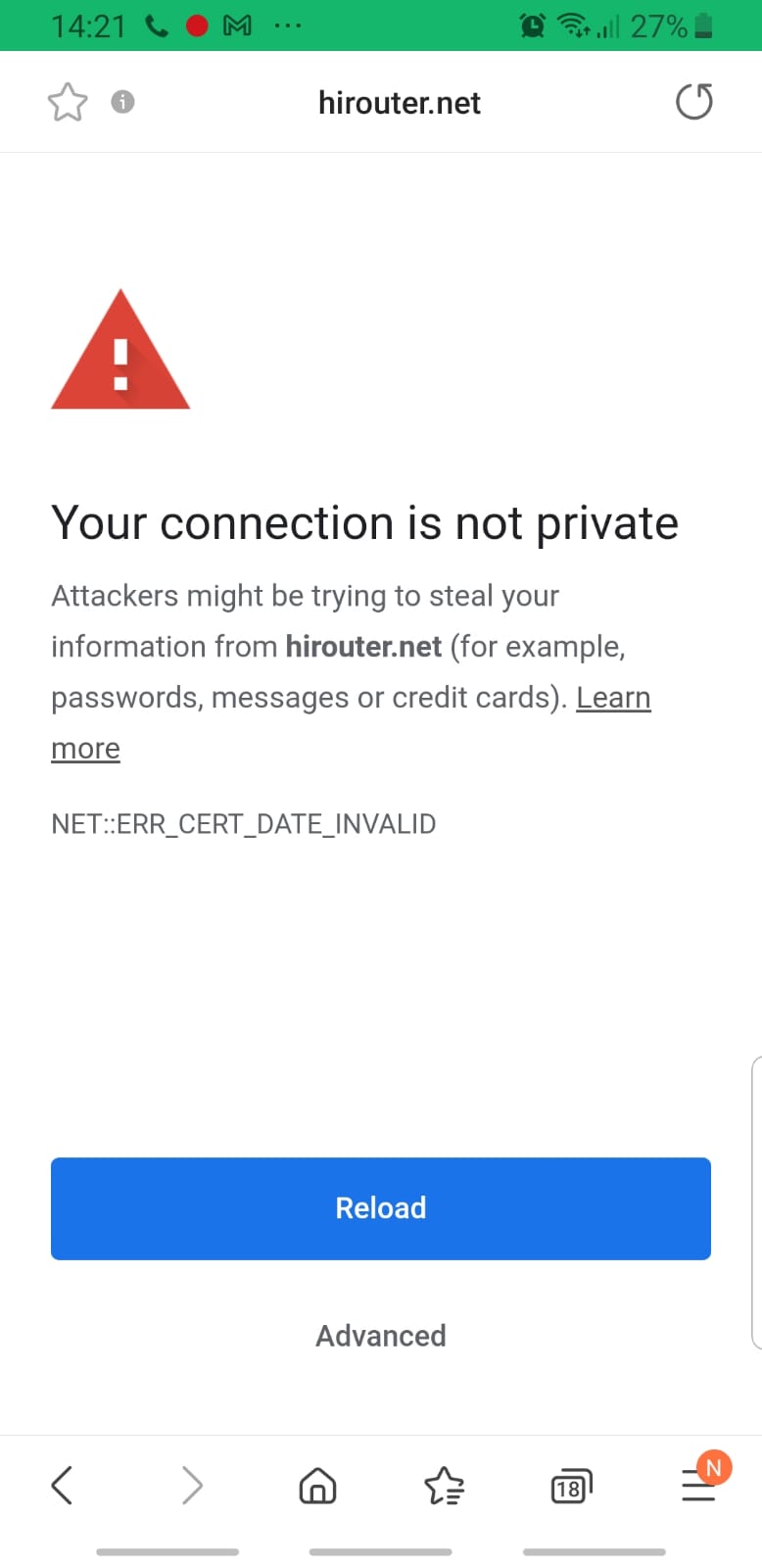 Jeho stránka nie je www.hirouter.net. Ale keď na ňu (svoju stránku) ide, tak mu ukáže danú hlášku. A…