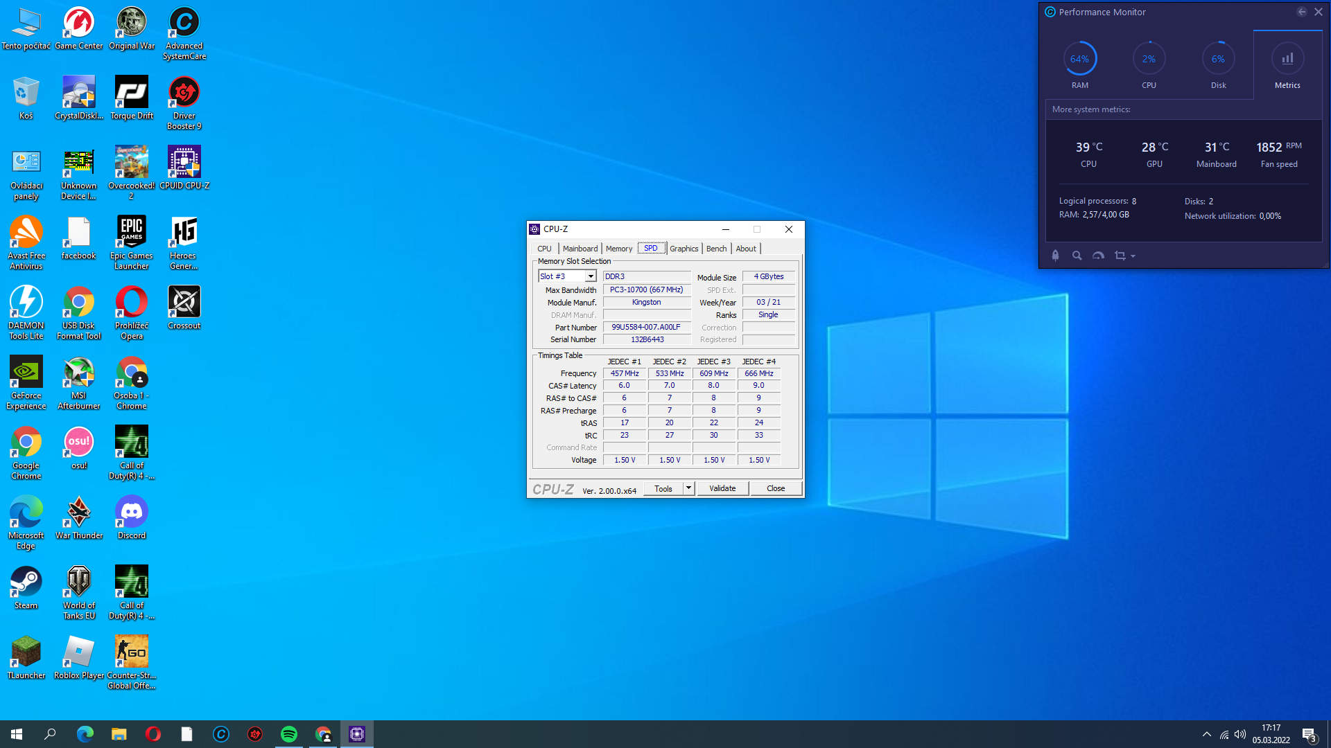 bios ukazuje 4gb . RAM plne funkcni v ostatnich PCC bez problemu, Nejaka rada?