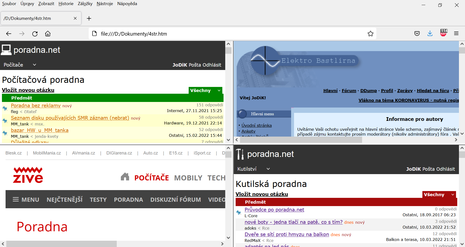 OK toto jde <frameset rows="*,*" cols="*,*"> <frame src="frame_1.html"> <frame src="frame_2.html">…